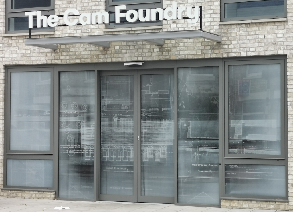 Cam FoundryThe Cam Foundry is the current occupant of 315-349 Mill Road whose history as a Cement Works is described elsewhere. To link with its past special features have been commissioned.