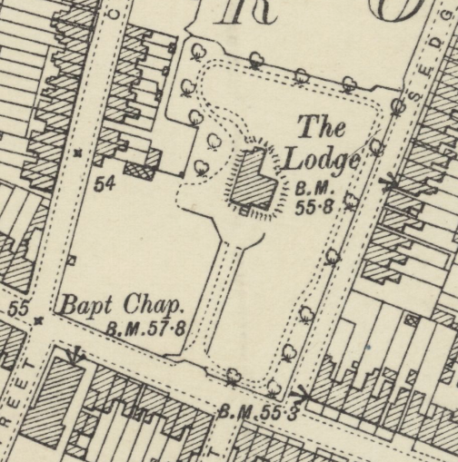 The Lodge, Mill Road OS Map 1901Mill Villa, later the Lodge, stood on the site of the Broadway. It was ‘the big house’ in Mill Road.