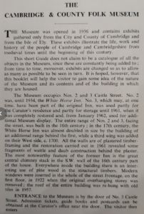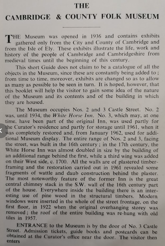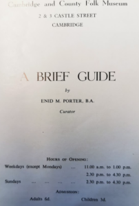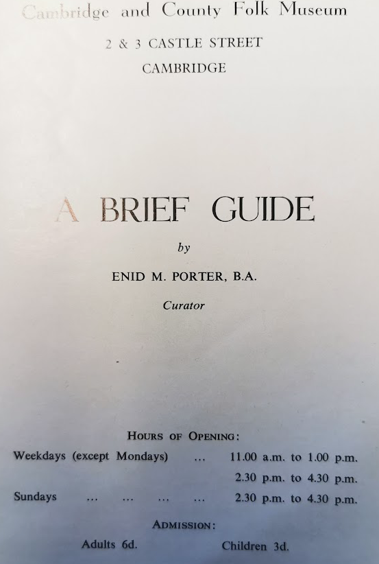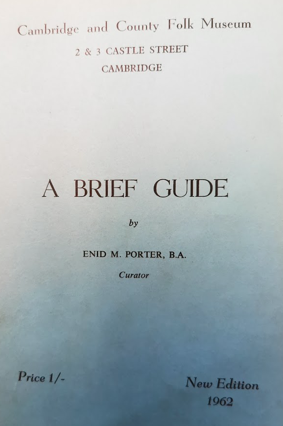 A Brief Guide to the Cambridge County Folk Museum 1962 by Enid Porter