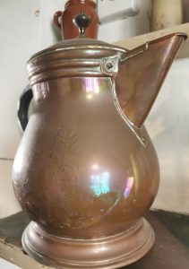 The jug is engraved with the arms of the plumbers and glaziers guild. Thomas Greef left instructions in his well that it was to be filled with beer for the benefit of his friends every Saturday at the Eagle pub in Ben’t Street.
