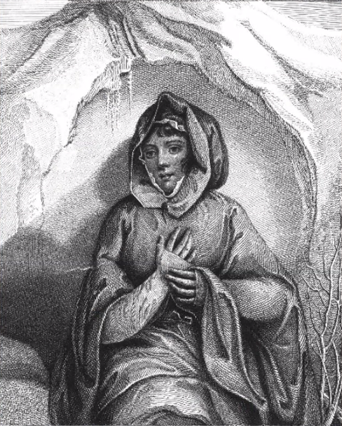 This day is published by J Baldrey drawing master and engraver, price one shilling, a portrait of Elizabeth Woodcock of the parish of Impington, near Cambridge, who was buried under a vast drift of snow, on her way home from Cambridge, on Saturday evening, February 2, and lay there without sustenance until Sunday noon, February 10; when she was found alive and sensible. Taken as she lay in bed on February 12, by Mr. John Marshall, surgeon, Cambridge: with a full, true and clear account of this unparalleled circumstance, which is also published, price 2d for the Benefit of the poor Sufferer and her Family.