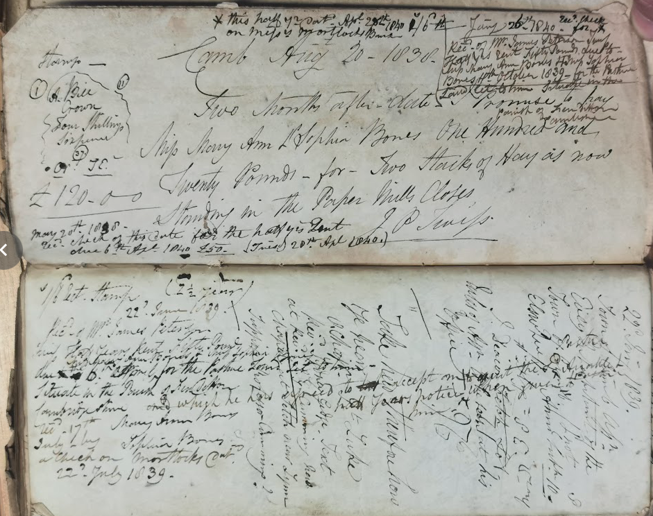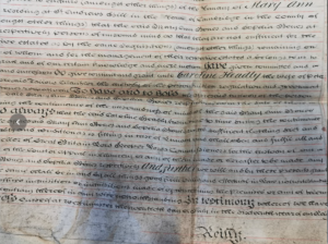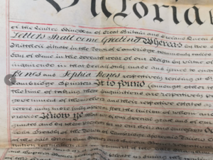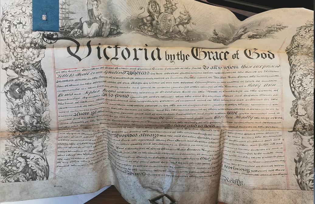 M.L. and I went over the two dilapidated houses, gardens and 6 cottages belonging to 2 unfortunate maiden Ladies of the name of Bones who have just been removed to Bedford Asylum. Their relation (Mr Michael Headly) kindly showed us over the place: it was a melancholy exhibition: the 6 cottages were all dismantled, the gardens become a wilderness: the house in St Andrews St had never been finished, they having quarrelled with their Architect:- the house facing the Pig market was where they lived. They fancied everything was poisoned: they used to throw aside their bread after smelling to it: we saw at least 60 loaves of bread in different closets, many wrapped up in paper an dated, the greater part mouldy and hard: they had fastened down the register to their stove, tying it to the top bar, because they thought there were spies in the chimney: they did not venture to speak to each other lest they be overheard by the spies, but wrote down their thoughts on slates: they slept in the same bed: they spoke to persons from a pannel in the bedroom window: they had no servant but an occasional charwoman; they had had not changed their linen for weeks nor see the said charwoman: the elder of the 2 sisters had more than £1000 about her when taken away: they resisted very much (as might be expected) when taken away, and fled from room to room: their little dog defended them stoutly and bit the Policeman. The house and cottages that were unoccupied would let for more than £150 p.a.” in one of the gardens was the old decayed chaise of their Father (an Attorney) ….. [John Bones died in 1813 and is commemorated in a memorial tablet on the north wall of Great St Andrew’s Church.]