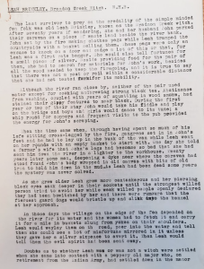 She writes that the caul [membrane enclosing the foetus] in which W H Barrett was born in 1891 was immediately attached by the doctor to a sheet of brown paper. It was later borrowed by relatives and friends of the Barrett family when they were travelling at sea. [It was believed to protect against drowning.] It went, wrapped in oiled silk in a tin, with W H Barrett’s uncle to South Africa in 1899. It was then returned from the Cape only to be reborrowed for the uncle’s homeward voyage in 1902 after the Boer War. A cousin took it in 1905 to Canada and returned it on arrival in Vancouver. W H Barrett’s brother sailed to Malta with it in 1906, returned it, then sent for it again when he left Malta for Egypt. Several soldiers wrote from France during the First World War asking to borrow the caul; they never asked to have it with them on the voyage from England. The caul was later given to the Cambridge Folk Museum.