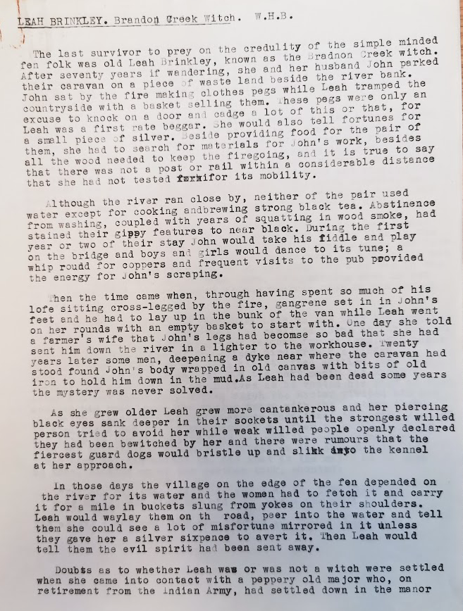 Walter Henry wrote several books about the Fens and was befriended by Enid Porter for whom he became a significant source of information about folklore and customs in the Fens.