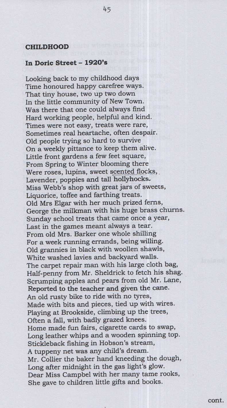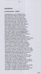Robert W. Stevenson, born 1916, son of Robert Stevenson of no. 13, later of 115 Mowbray Road, wrote a poem when he was stationed in Ireland with the RAMC in 1943, called CHILDHOOD, In Doric Street – 1920’s.