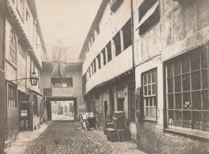In many parts of the town of Cambridge the dwellings of the poor are also in the most disgraceful condition. I might refer to King street and the alleys leading therefrom, to Christ’s lane, and other places. But perhaps the worst of all is a place called Falcon yard. In one of the houses which I visited there were thirteen families residing. In a room on one of the floors lived a man, his wife, and five children. The eldest boy was sixteen years of age, the eldest girl, a little over fourteen, having been for several months a common prostitute, and three younger children, together with the parents, all slept in one and the same room: the eldest boy and girl and two other children in one bed on the floor, the father, mother, and one child, on a stump bedstead. The number of persons residing in this Falcon-yard, I was informed, was about 300. There are two privies for the use of the whole of the inhabitants, but as they are at a distance of about fifty yards from some portion of the premises, those of the inhabitants who have back windows to their rooms are in the habit of throwing all their refuse out of the windows on to a large dung-heap in the Red Lion-yard, the reeking steam from which is constantly penetrating the rooms. “Here,” said one of the inmates of this crowded and dirty yard, “this is my grand hole that I pays sixteen pence a week for – this is where me and my husband and daughters sleeps; the bed is about as big as an old pocket handkerchief. I have been here four and thirty years.” “I’ve got two rooms,” said another person, ” and here’s our bed-room,” opening at the same time a small door which led to a dark recess in which there was no window or light whatever. A piece of paper, however, was lighted, and I was then enabled to distinguish the form of a bedstead in one corner, and a heap of bed clothes on the floor in the opposite portion of this “black hole.” The “Falcon,” which gives its name to the yard was formerly a very extensive inn. There is an old-fashioned gallery which runs round the yard, and the different apartments round this gallery have been let off to lodgers at rents varying from 1s. 4d. to 2s. per week. Several of them are kept remarkably clean, considering the character of the place, but the majority are as wretched as it is possible to conceive. They are all of them very dark and ill-ventilated……