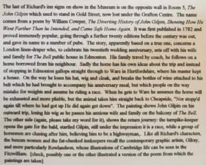 John Gilpin, pub sign by Richard Leach, commentary ©Museum of Cambridge