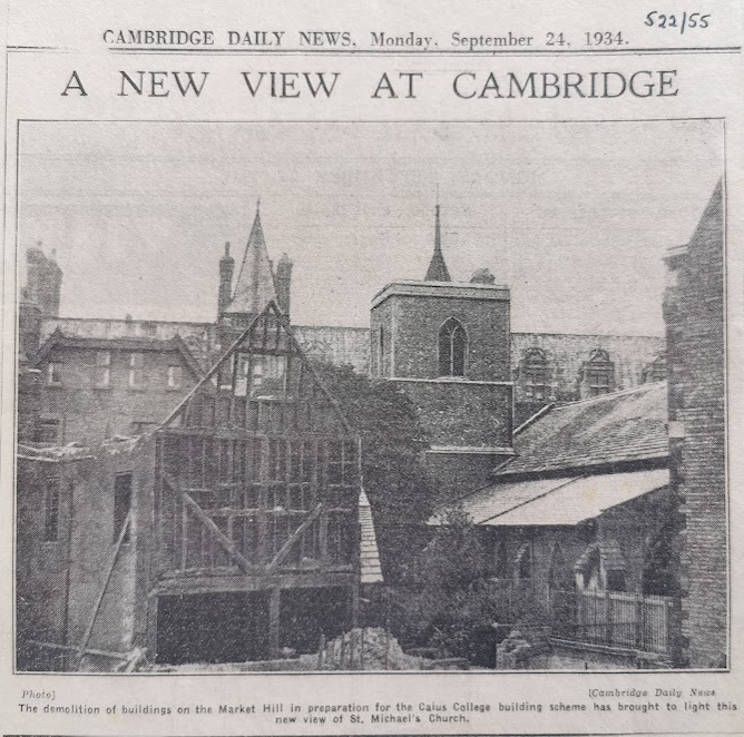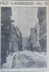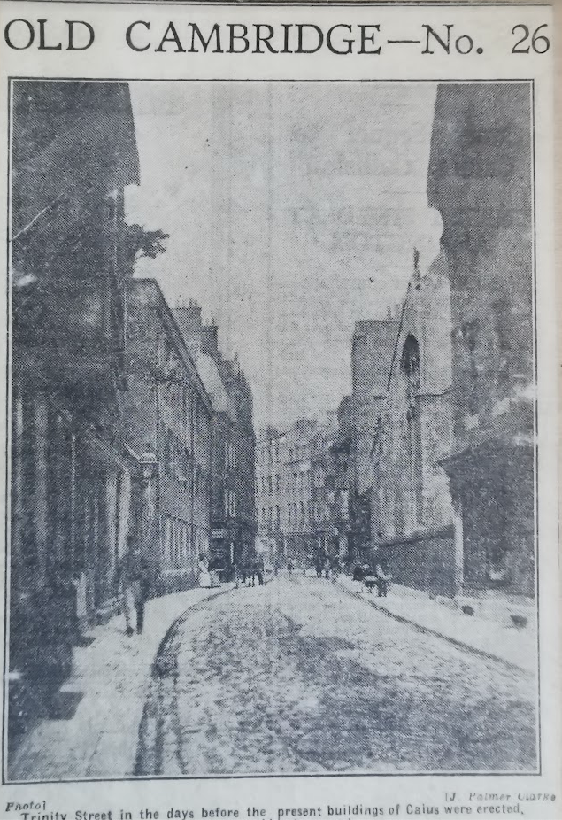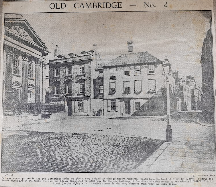 The college acquired the houses on the corner of Trinity Street in 1782 and partly converted them into rooms for students in 1854. They were demolished 1868-1879 when Tree Court was rebuilt.