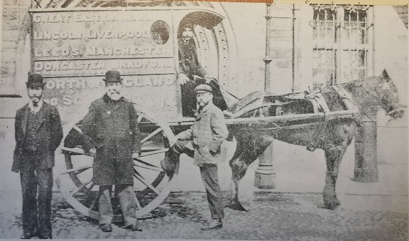In the picture are: George Frederick Conquest, driver for 26 years, from left to right, Mr Walpole, chief clerk of booking office, George Long, chief clerk of the goods department, and Mr Banham, chief clerk of the town office.