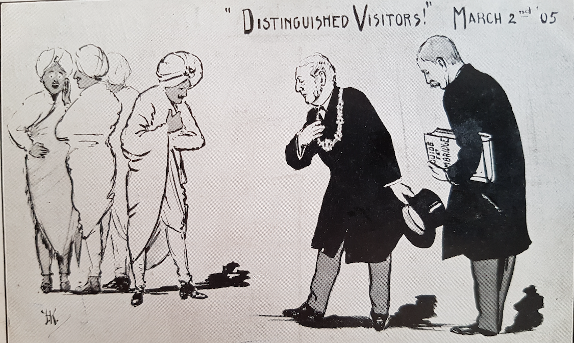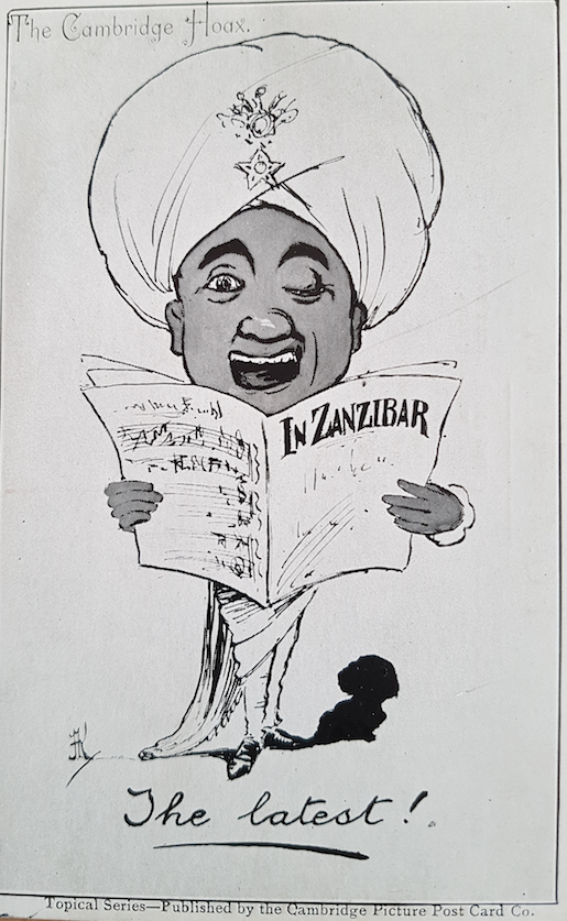 In 1905 two Trinity students, Horace de Vere Cole and Stephen created a hoax visit by the Sultan of Zanzibar to Cambridge. On 2nd May they were met at Cambridge by coach and taken to the Guildhall to meet the mayor who was only informed of the visit that morning. They had lunch and were taken on a tour of the town. This had similarities to the 1873 Shah of Persia hoax. (Horace de Vere Cole is also mentioned in A House By The River p.74 as prankster on the river who ran foul of Professor Darwin.)