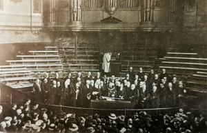 The report went on to say that the audience was a large one but there was ample space in the main hall so the arrangements for an overflow audience in the small hall were superfluous. “Hardly one of the speakers applied himself to any serious argument, but adopted a sarcastic or humorous line, and really at times the speeches were very amusing.”