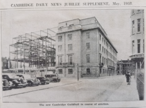 25/2/1932 Apart from the large hall and council chamber the Cambridge Guildhall is worn out and absolutely unsuitable. The accommodation in every department was deplorable – dark, dismal, horrid, unlit and unhealthy. On Castle Hill there was a fine new building being erected for the County Council who were planning to spend £8,000 on furnishing alone. Never since the war had prices in the building trade been lower; this was the right moment to consider rebuilding, councillors were told. (Cam.News)