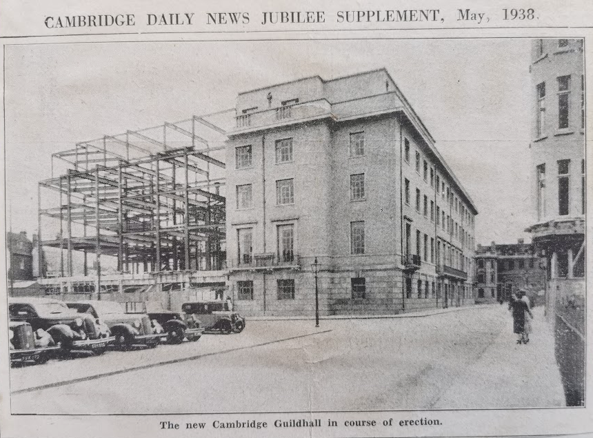 15/7/1932 Cambridge councillors say the municipal buildings should remain on the Guildhall site and not move to Parkside as had been proposed. It should be a worthy building, not surrounded by shops. With four floors they could provide 70 per cent more accommodation for officials but five would add to the dignity of the building and leave some surplus space that could be let and provide a source of income. But it must not overwhelm the market place. (Cam.News)
