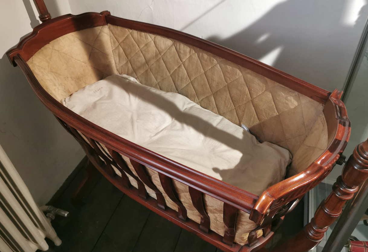 Mahogany cot used by Darwin family at Newnham Grange, now in the Museum of Cambridge: