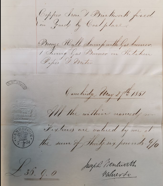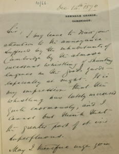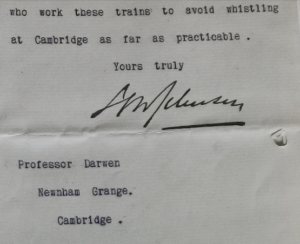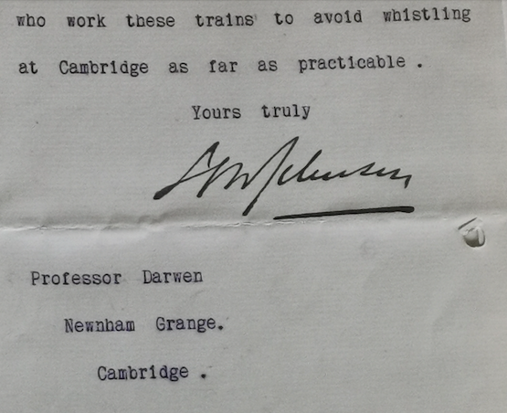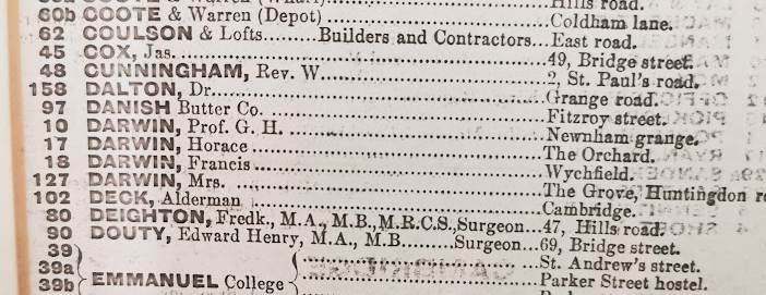 1884 Edward Beales who was running the family coal business was unable to meet his debts. All his assets were handed over to his creditors and the house in Thompson’s lane was sold. Alexander Macintosh bought the entire ironmongery business. the foundry was renamed Cam Foundry and the shop at 14 Market Hill became the well-known premises of Alexander Macintosh and Sons. The coal business continued under the name of P Beales and Co even though Edward left Cambridge. Miss M E Beales took over and by 1909 the firm was thriving again. The family house was in the hands of Edward Beales Trustees. Arthur Gray’s lease came to and end in March 1885. George Darwin must have known that this was gong to happen and in September 1884 had written to John Eaden, Edward Beales’s about renting the house.