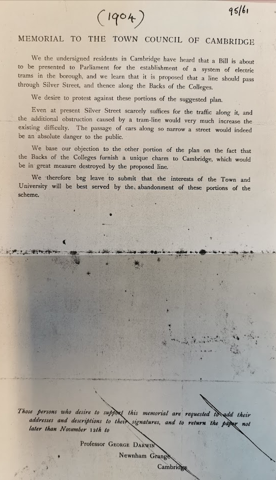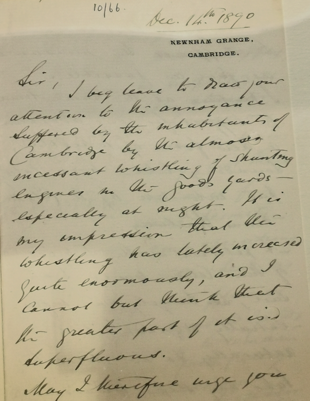 Gwendolen Darwin, later Gwen Raverat, recalls in her account of life in Cambridge, Period Piece (pub. 1952), how from a window at the front of Newnham Grange she could see where ‘there were railings along the road leading to the bridge, lovely Georgian railings, now improved away; and often people were glad to dodge behind them to escape from the terrified and terrifying herds of cattle, which were driven with bangs and shouts, through the streets to the Monday cattle market.’ (p.44)