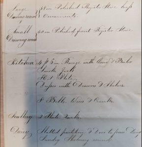 Darwin employed the London architect, J J Stevenson, to make changes to the house. He was a distinguished architect having built churches, country houses, offices and town houses in many places. Work at Oxford and Cambridge Universities was still to come. he had completed his plans by the end of the year and 13 Feb 1886 Mrs Darwin wrote to her family in the USA: The improvements are chiefly to be made in the kitchen apartment. This is what every English house has in that quarter. Hall or some small room for servants’ sitting room. Butler’s pantry, Kitchen, with range, no sink, Scullery and smaller kitchen which has range. A larder, a cupboard or big store-cupboard. The cost of the kitchen was estimated at £690 and of the entire building works, £1050. The builder was to be William Saint. To assist with the choice of wallpaper and paint they asked Frederick William Leach.