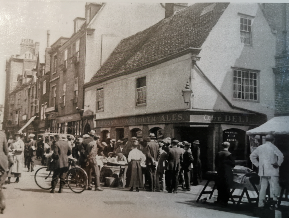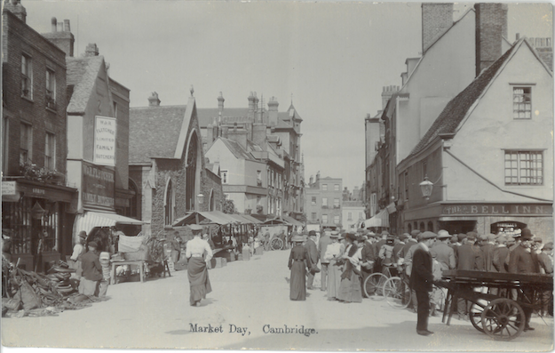 However, research by Bryan and Wise, A Reconstruction of the Medieval Cambridge Market (2002) in Proceedings of the Cambridge Antiquarian Society 91, argues that the origin lay in the former Pease market. Whilst at a later date there was a fish market here, the Pease market was originally here alongside that for Corn and Oats. This would have conveniently put the staple ingredients for bread and pottage alongside each other. In 1578/9 the Corporation Common Day Book records the removal of the fishmongers to a new location at ‘the pease market hill.’