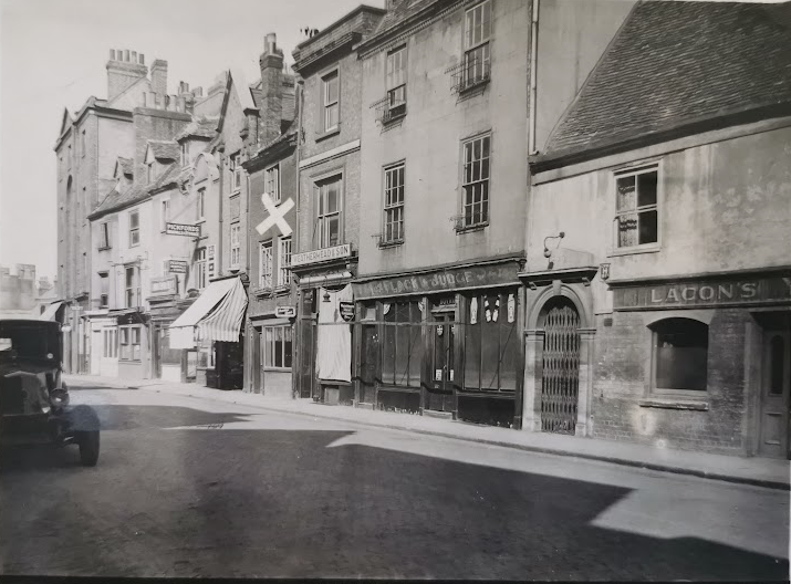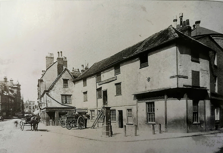R C lambeth noted that no.17 was the oldest house. In Queen Anne’s time the timber frame was hidden behind a dummy brick front. It was a butcher’s then a bookseller’s then a club.