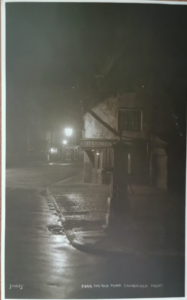In the Town Rental Book it is recorded that William Potts paid 1s 3d “for a cellar under Market Place, in front of the Three Tuns there, as by licence from Council, 1870.” The Three Tuns also had cellars reaching to the rear of the houses in King’s parade. All in all, at this location there were cellars covering about a quarter of an acre. Two of the tunnels are 100 yards long. Once used as wine vaults, during WWII they functioned as an air raid shelter for 400 people. (See The Cambridge Nobody Knows by F A Reeve, 1977.)