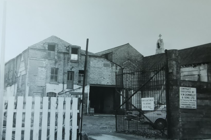 On the right is the rear of the old Corn Exchange. It was used as a shopping centre until 1884. When this failed, Ernie Hayward opened it as a music hall. It then became a garage. (Vanishing Cambridge, Mike Petty)