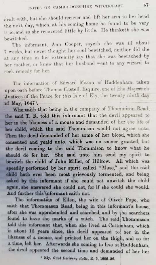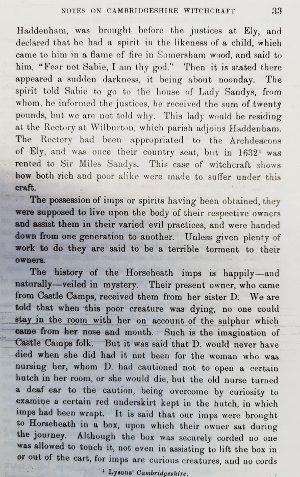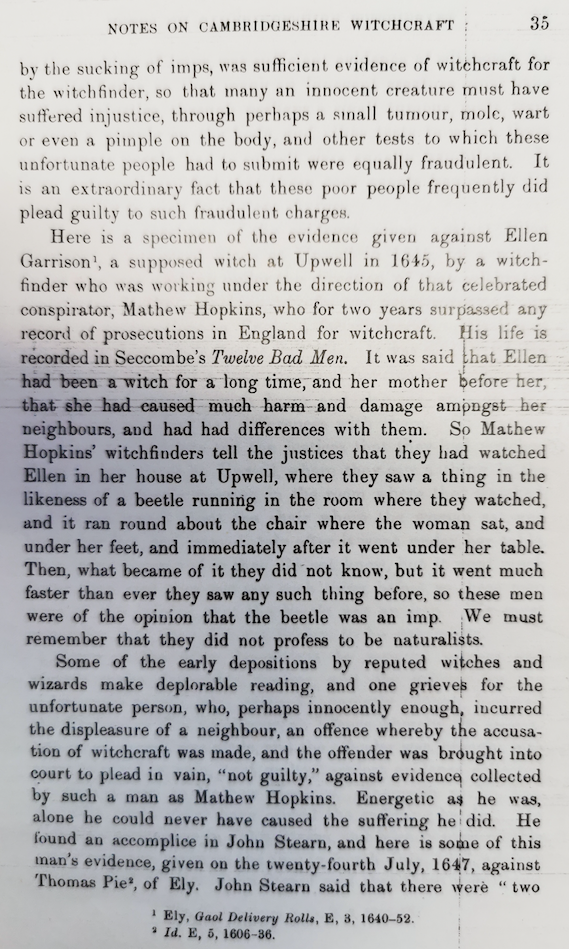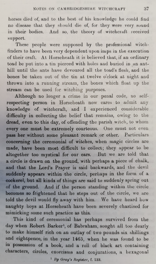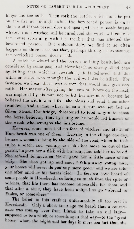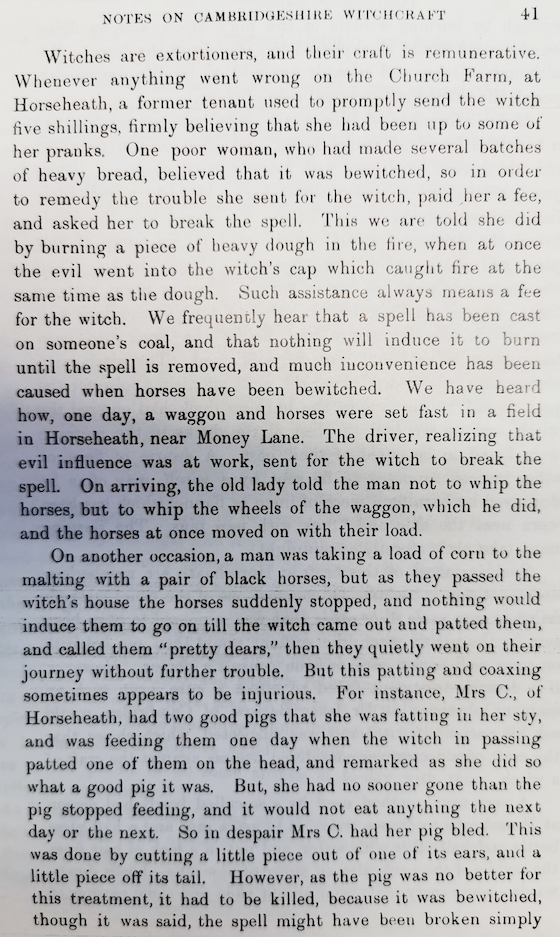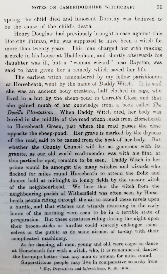 Notes on Cambridgeshire Witchcraft by C E Parsons (1915)
