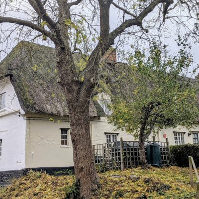 1958 by Trevor Dannatt for Peter and Janet Laslett. Ground floor external wall of Holco lightweight concrete blocks, painted green/black, with loadbearing cross walls; upper floor with vertical cedar boarding. Flat roof, with single projecting stack. Rectangular building with projecting upper floor. Part open plan with interesting section in its use of half levels.
