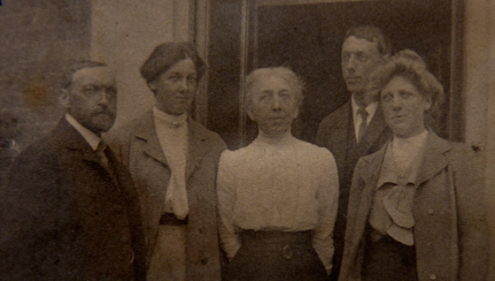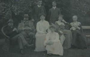 The photo shows Marjory Walker with Elsa, probably at Cranmer Road. Marjory’s older brother Keith is standing (left). Seated are WL Mollison, Wynnard Hooper, Marjory Walker, Margaret Hooper and Ellen, with Elsa in front. William’s younger sisterElsa introduced him to her contemporary (1902-5) at Newnham, Marjory Walker (1883-1966). They married in December 1908 and went on to have 6 children.