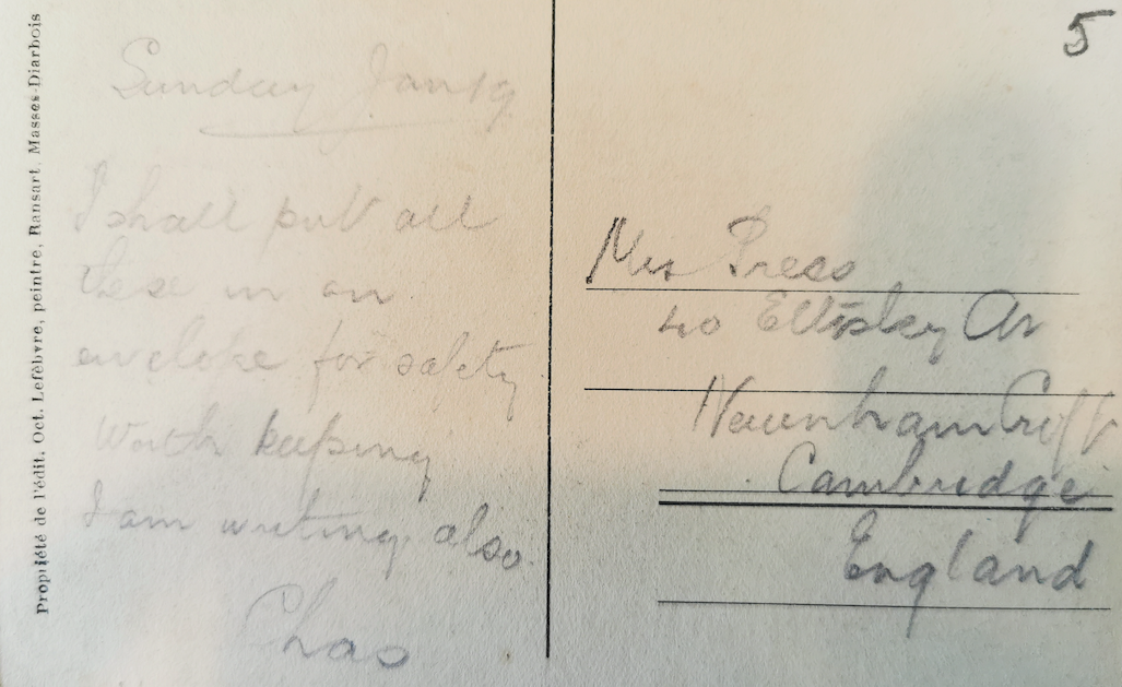 Charles Press postcard Jan 1919