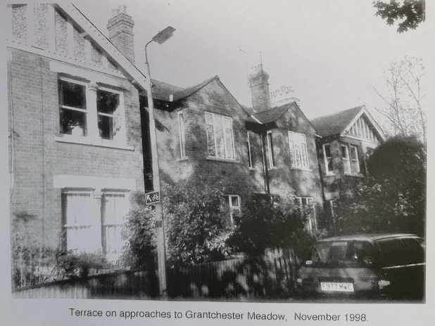 Terrace on approaches to Grantchester Meadow 1998Betty Nicholas (nee Hayward) has lived in Cambridge for most of her life. Her childhood was spent in Newnham where she went to school in the 1930s at Newnham Croft Primary School, then secondary school at Chesterton College. She worked at Boots on Chesterton Road and, after marriage in 1951, lived in Fulbourn and then in a number of houses in the south of the city in Worts Causeway and Queen Edith’s Way.