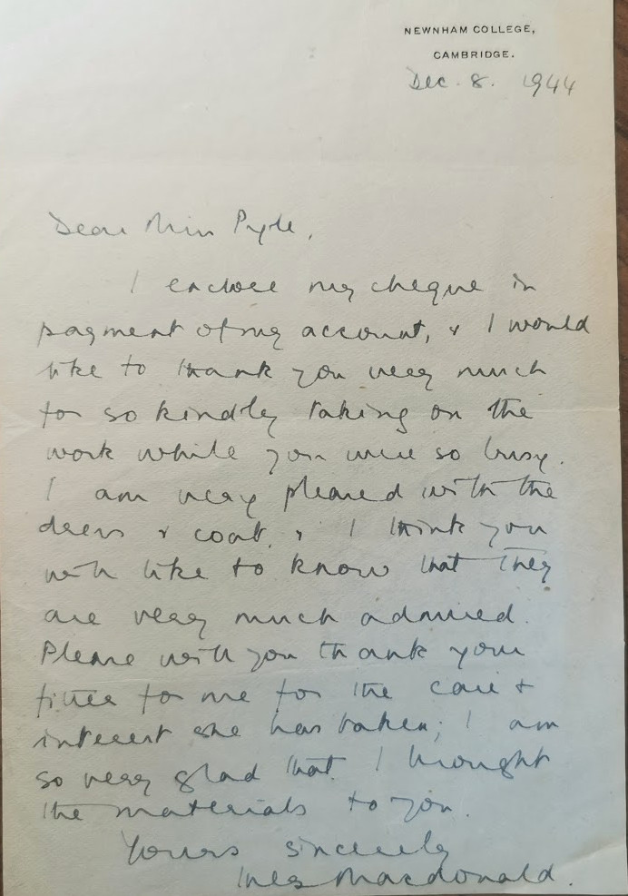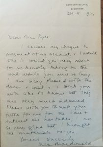 1944 Letter to Constance Pyle from Mrs MacDonald