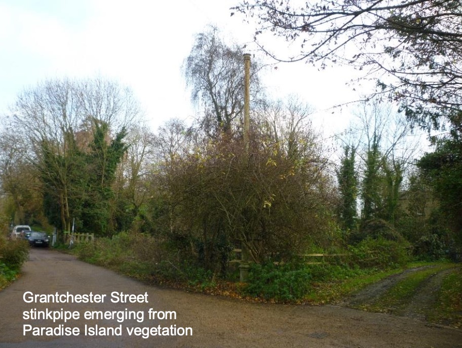 Cambridge has its stinkpipes, too, and these remarkable relics of that era of innovative engineering and evolving hygiene standards are still operational. Maintained by Anglian Water, who make sure from time to time no birds have built their nest in the crown, the stinkpipes continue to fulfil their function of venting the sewers of Cambridge. Anglian Water, too, are rather ‘hard-pressed’ when it comes to frequency of maintaining the paintwork of all their Victorian legacy!