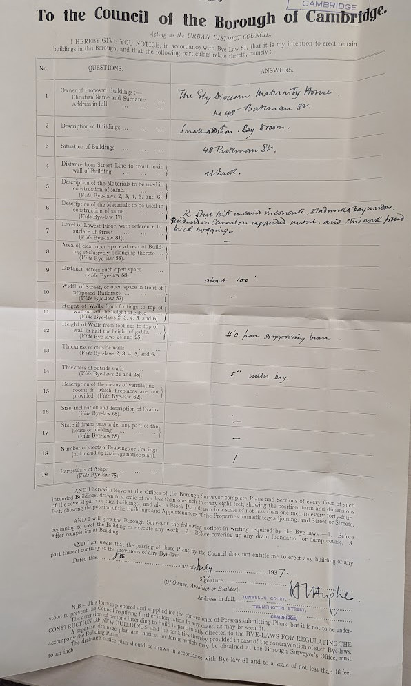 1937 Planning application 48 Bateman Street Cambridge (Cambridgeshire Archives)