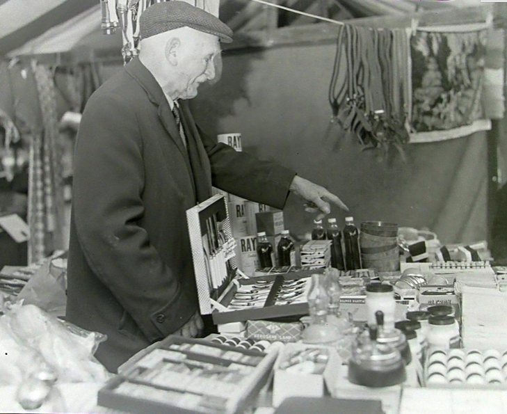 Harry Capon in 1964 on his stall (Mike Petty Fenland History)1901