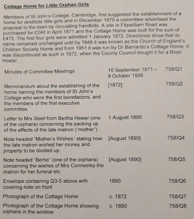 Papers held by Cambridge Archives about the Cottage Home