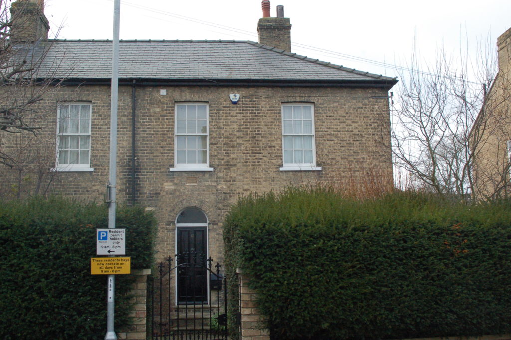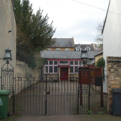 On the other side of St Eligius Street, opposite the sheds, there was a straight, narrow passageway, a space now used by the Convent as a car park, that led to Brook Street and a little iron bridge, also dated 1851, which crosses Hobson’s Conduit. The path and the bridge would have been used by the cows going between the Providence House Dairy and Coe Fen. This little cow bridge has a bend in it.