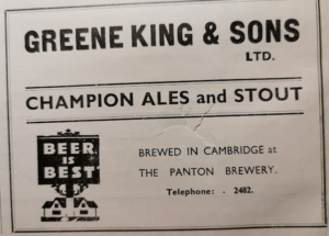 In 1933 Edward Fitzgerald was taken on as deputy manager of the Greene King brewery in Panton Street. The family moved from Suffolk and his son Desmond recalled in 2019 visiting as a boy and seeing that a ‘tea break’ was actually a ‘glass of beer’ break! It was a small brewery and his father stayed there until his retirement after 60 years working for Greene King.
