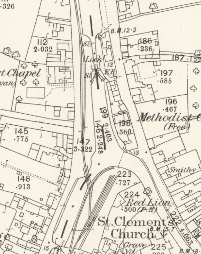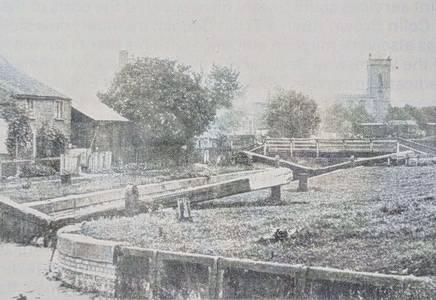 Outwell sluice with old tram depot visible, 1920s (H Coates)