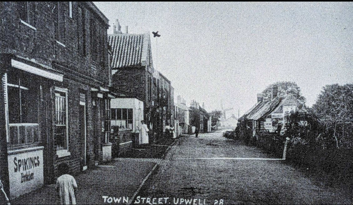 Yown Street, Upwell, view from Church Bridge, c.1930 (Coates postcard) (Cambridgeshire Collection)Upwell is in Norfolk, right on the border with Cambridgeshire.
