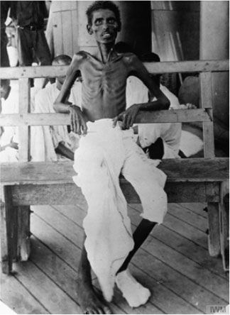 This emaciated sepoy was photographed after he had been liberated during an exchange of prisoners.
