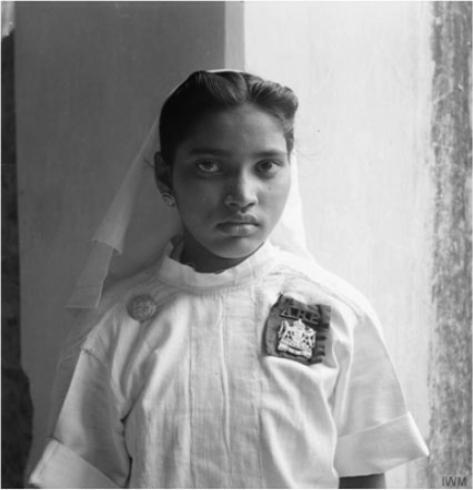 An Indian nurse at an ARP First Aid Post in Calcutta.