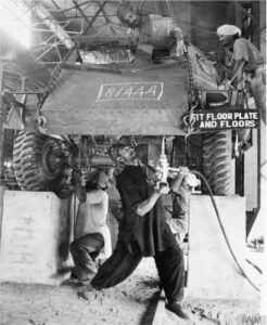 Workers at an Indian railway workshop now employed in the construction of armoured vehicles, 1942.