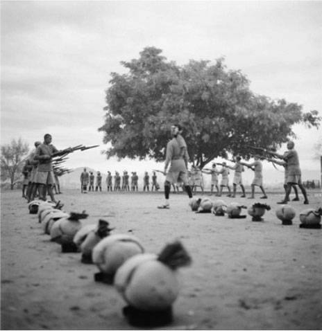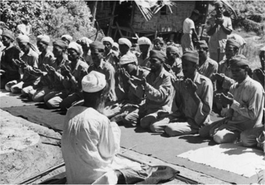 The Maulvi carrying the Koran before rows of Muslim recruits at the swearing-in ceremony