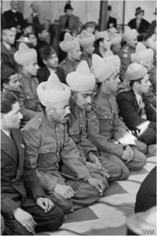 Amongst the congregation at prayer at the East London Mosque are Muslims from India, Afghanistan, Iran, Iraq, Egypt, Sudan, Palestine, Transjordan, Syria, Arabia, Aden and Somaliland, and they include soldiers and merchant seamen.