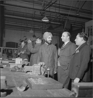 INDIAN LECTURERS VISIT INDIAN TECHNICIANS: WAR INDUSTRY AT LETCHWORTH, HERTFORDSHIRE, ENGLAND, UK, 1943