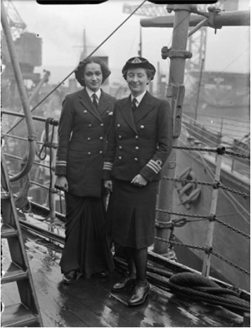 Chief Officer Margaret L Cooper, Deputy Director of the Women’s Royal Indian Naval Service (WRINS), with Second Officer Kalyani Sen, WRINS at Rosyth during their two month study visit to Britain.