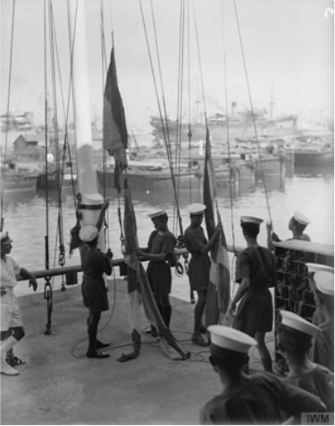 Sinhalese ratings of the Ceylon RNVR undergoing instruction in signalling.