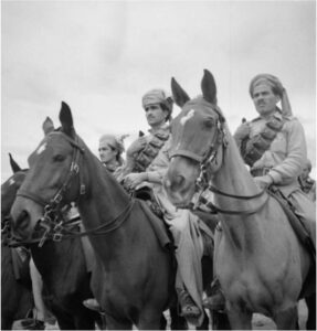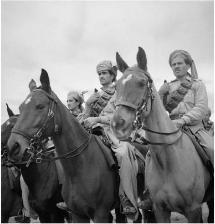 Mounted Infantry of the Tochi Scouts about to set out on patrol from Fort Meranshar on the North West Frontier of India.