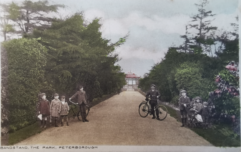 Central park, Peterborough circa 1921The bandstand was removed in the 1960s.