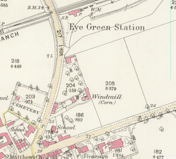 This was the last windmill standing in Eye. Only seven 8 sailed windmills were ever built in England. It was built around 1821 and extended in height around 1850s. It was around 71ft in height and had 7 floors.